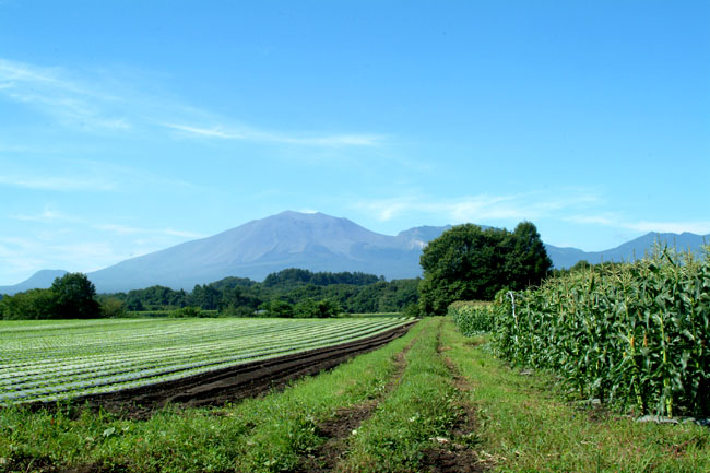 | 浅間山の全貌が見られたのも、本当に久しぶりです。朝から何枚も撮影してしまいました。今の時期はキャベツの2回目の植え付け、そしてトウモロコシを迎えています。北軽井沢のトウモロコシでは「未来」という品種が甘くておすすめです。生でも食べられます。 |