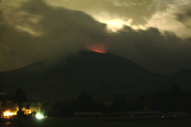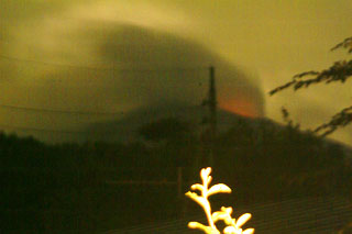 | 私の山荘の庭からも噴煙に反映する火映現象が観測されました 噴煙のバックは月明かりです |
