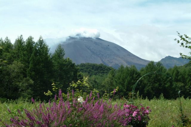 | 北軽井沢の友人Kさんの家は 北軽井沢で浅間が一番よく見える家です いつ行っても感動します 最近は落葉松が伸びて 少し裾が見えなくなってきましたが やっぱり美しい! |