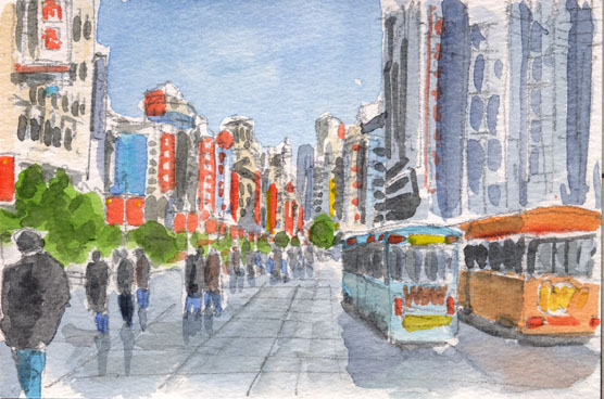 | 南京東路(ナンジントンル) かつて上海で一番の繁華街でものすごい賑わいでしたが 今はずいぶん近代的になりました |