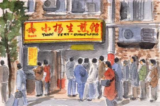 | 人気の小肉包屋さん この店は超人気店で 常に行列ができています 大きな小肉包が4個で4元(約60円) ものすごくおいしくて しかもお腹一杯になります |