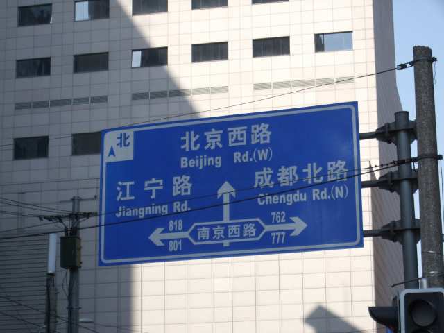 | 道路標識 日本のものと似ていて(というか全く同じで) わかりやすいです 方位が書いてあるのが親切で 日本も真似してほしいです 大きな通りの名称は 中国の都市名をつけてあります |