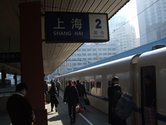 | 上海駅 上海には「上海駅」と「上海南駅」の2つのターミナルがあります 列車は「火車」というので 地下鉄駅と区別するため 「上海火車駅」ということもあります(「汽車」は自動車のことです) 上海駅は近代的で立派になっていました |