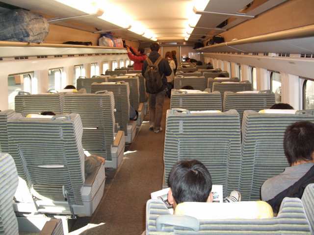| 一等車の内部 これも 長野新幹線のグリーン車と「まったく」同じ 一瞬 錯覚を起こしました |