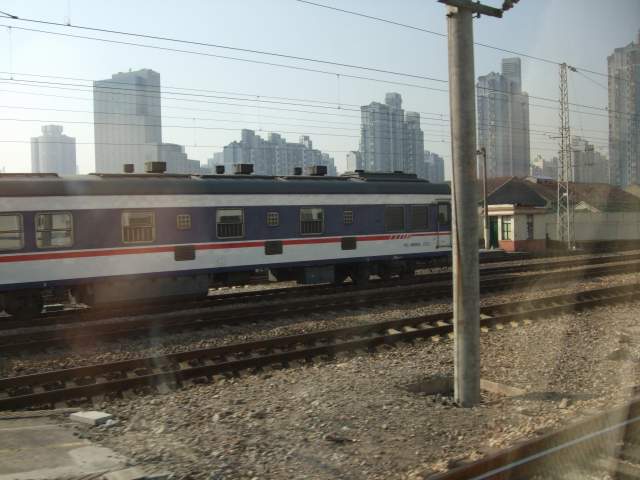 | 車窓風景 これは上海郊外の「上海西駅」を通過中 上海西駅は現在貨物専用駅のようです 高層アパートがたくさん見られます |