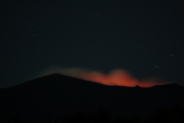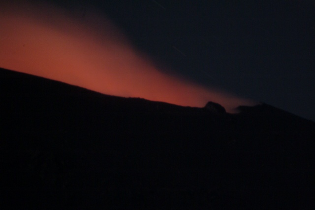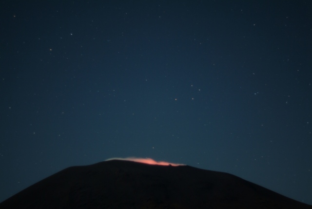 | 浅間園直下(有料とのジャンクション付近)にて 星もきれいで、扁平な火映が、とても幻想的な光景でした |
